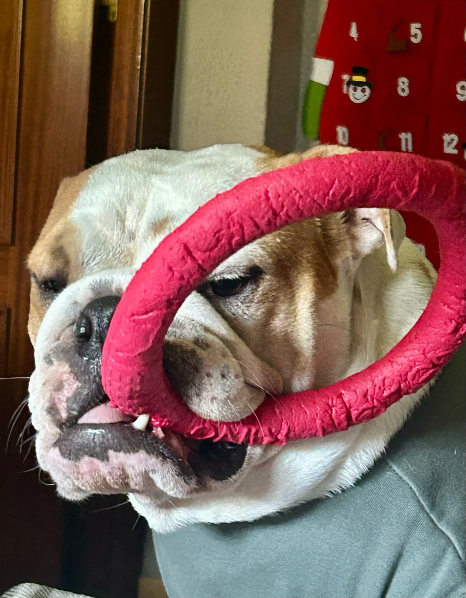 FORTEMENT RECOMMANDÉ, c'est le troisième que j'achète. ET JE PENSE EN ACHETER D'AUTRES. Il ne se casse pas en morceaux. Mon chien le mord et le mord encore, ça lui masse les gencives et nettoie ses dents. 100% recommandé et durable. J'ai un bouledogue anglais de 26 kg et il n'en a pas encore cassé un seul.