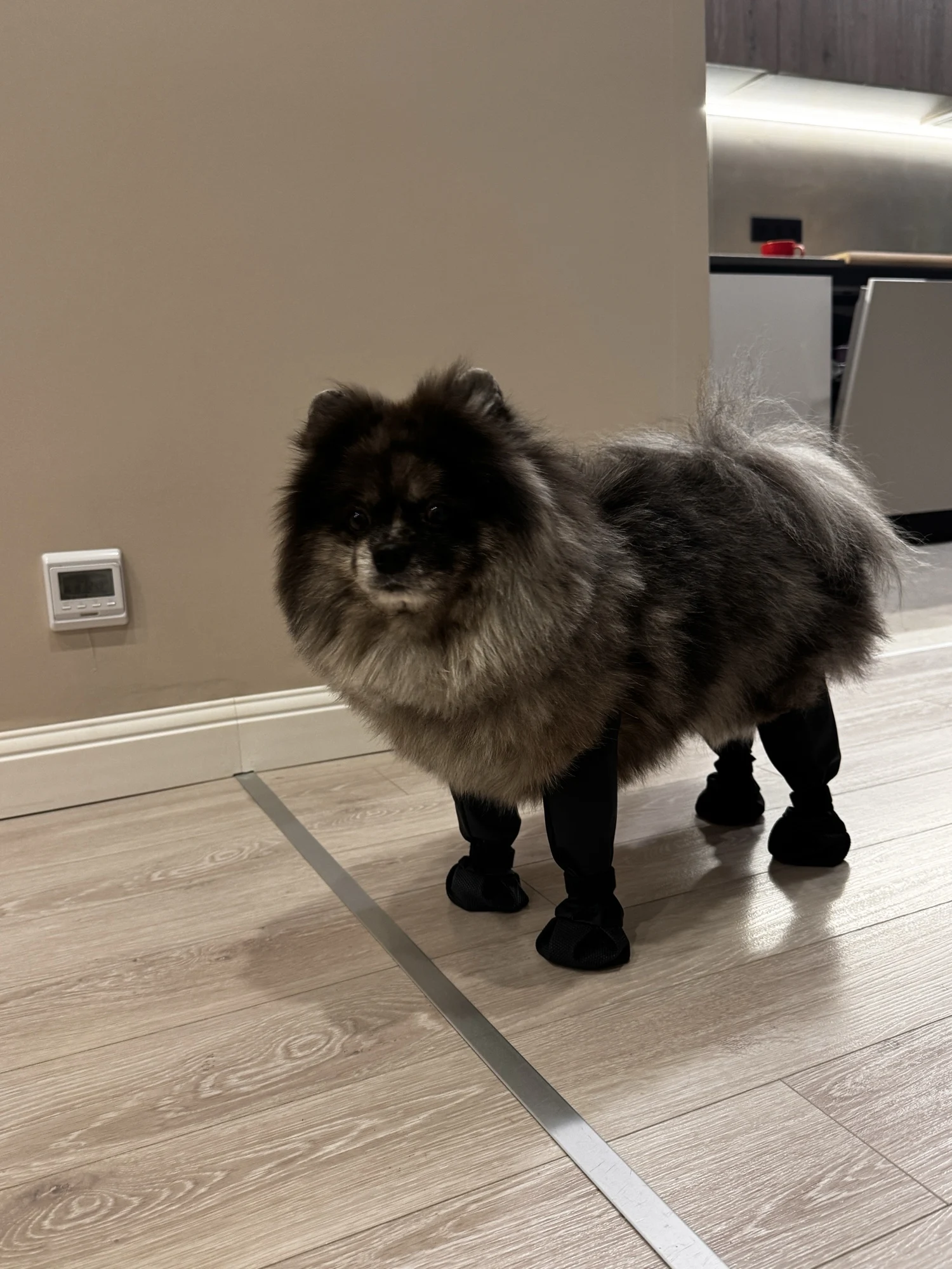 Bonne qualité, matière épaisse, pas de fils lâches qui dépassent. Je l'ai ajusté pour qu'il convienne au chien ; au début, c'était inconfortable pour lui, mais il s'y est vite habitué. Spitz pesant 7-8 kg, assez grand, j'ai pris la taille M.