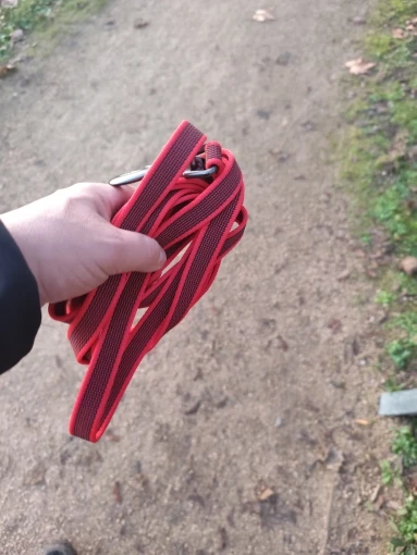 Laisse incroyable. Léger et solide. La partie centrale est caoutchoutée, de sorte que même lorsque le chien tire, la prise est forte et la laisse ne brûle pas les doigts. Fortement recommandé